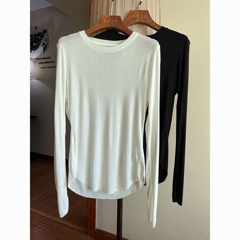 ली PLM-9 उच्च लोच मॉडल ठोस रंग गोल गर्दन लंबी आस्तीन फिट और स्लिमिंग लुक, आंतरिक परत नीचे टी-शर्ट